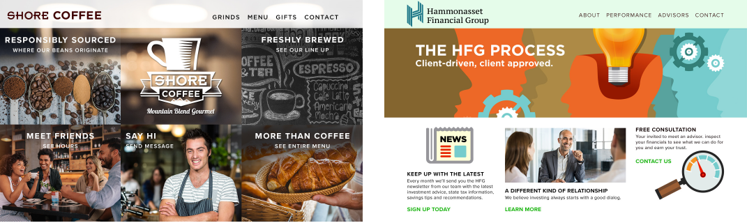 ** General site support or update work is available at an hourly rate. Additional design, photography, and copywriting services are available and will be estimated on a project basis.